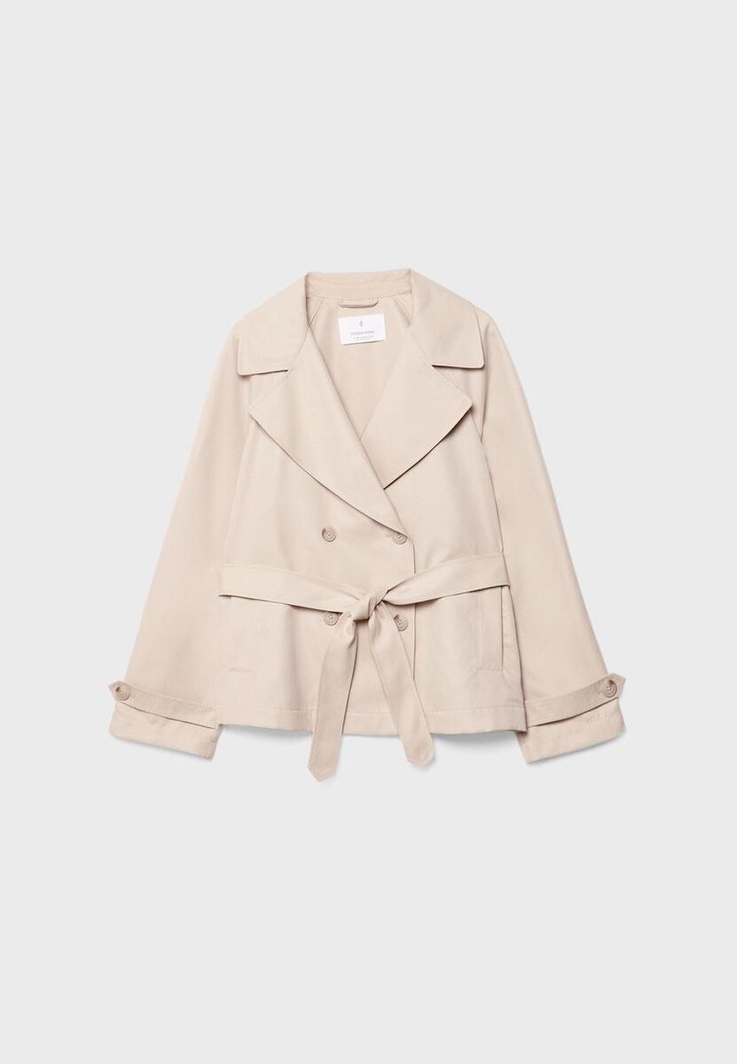 Manteau de trench court fluide avec ceinture