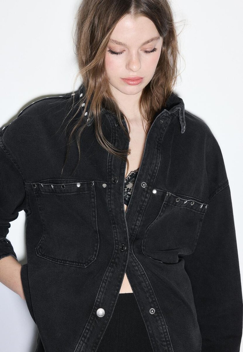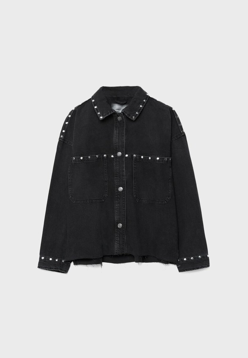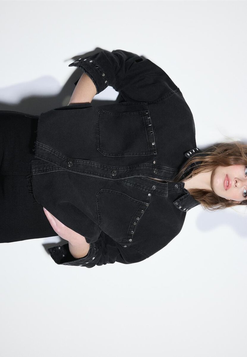 Surchemise courte en denim cloutée