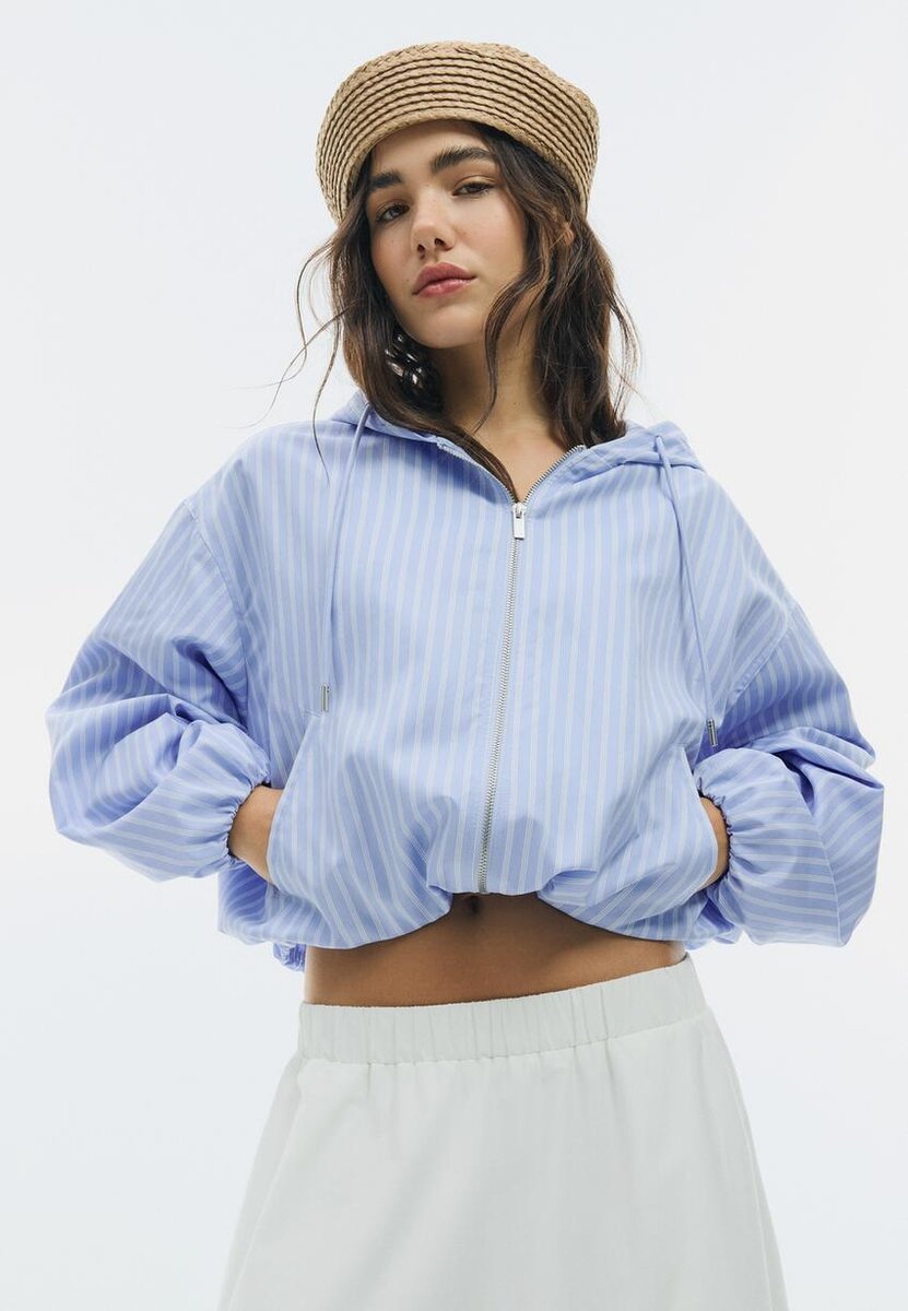 Veste à capuche basique en nylon rayé