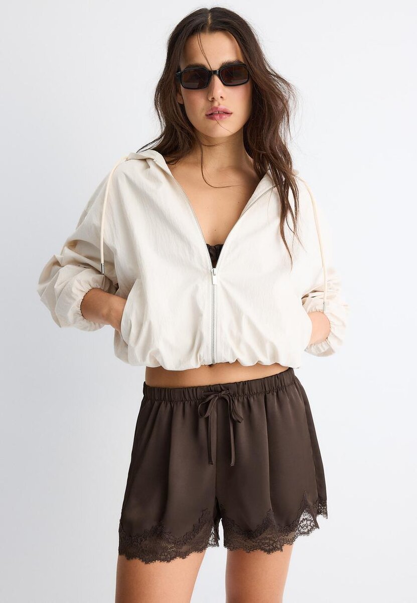 Veste basique avec capuche à cordon de serrage réglable. Manches longues avec poignets élastiqués. Poches avant. Fermeture à glissière sur le devant. Ourlet élastiqué. Disponible en plusieurs couleurs.