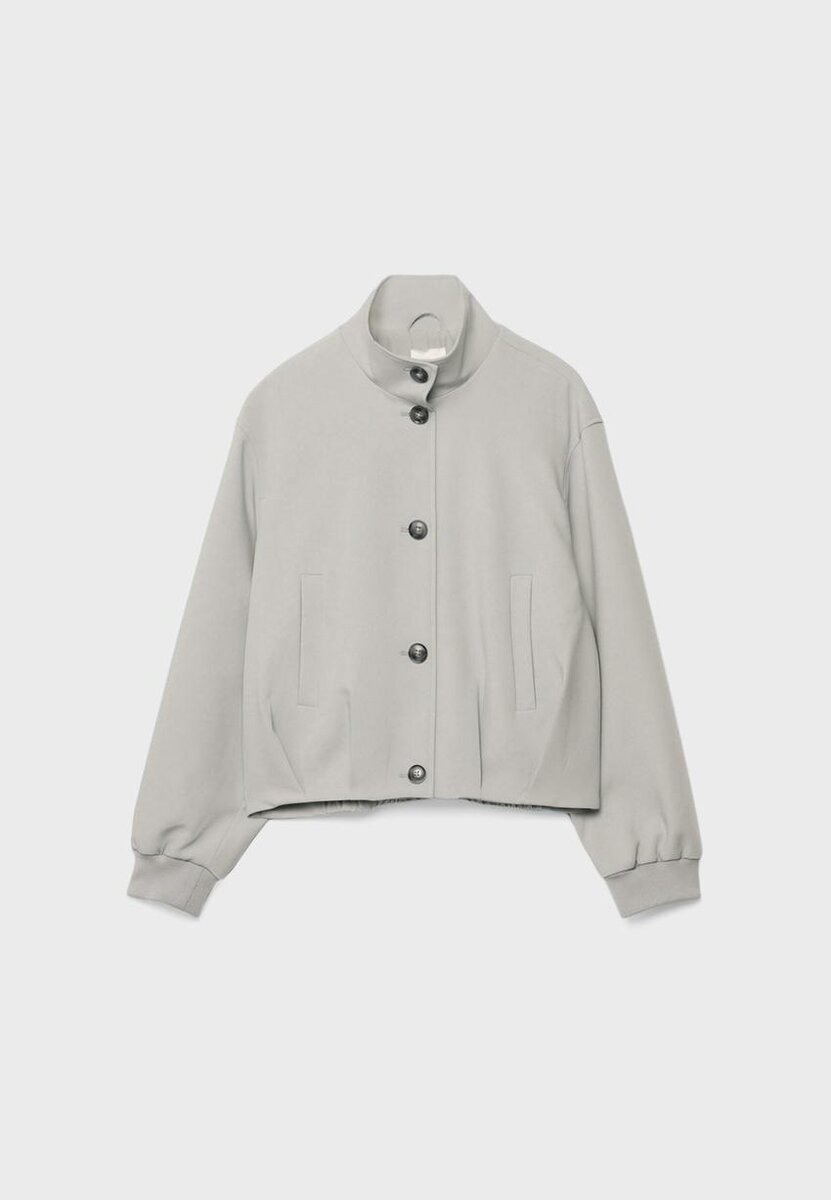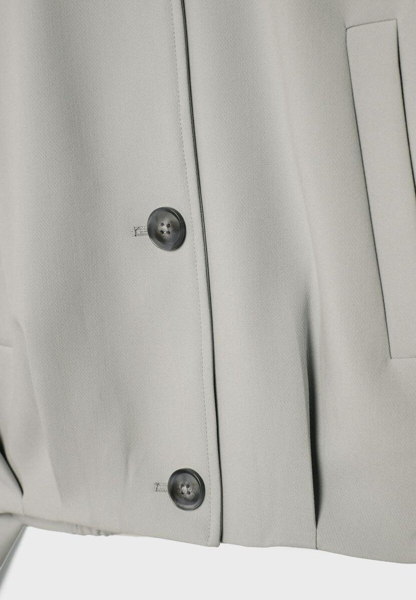 Veste à col montant et manches longues à revers. Dotée de poches passepoilées sur le devant et d’une fermeture à boutons sur le devant.