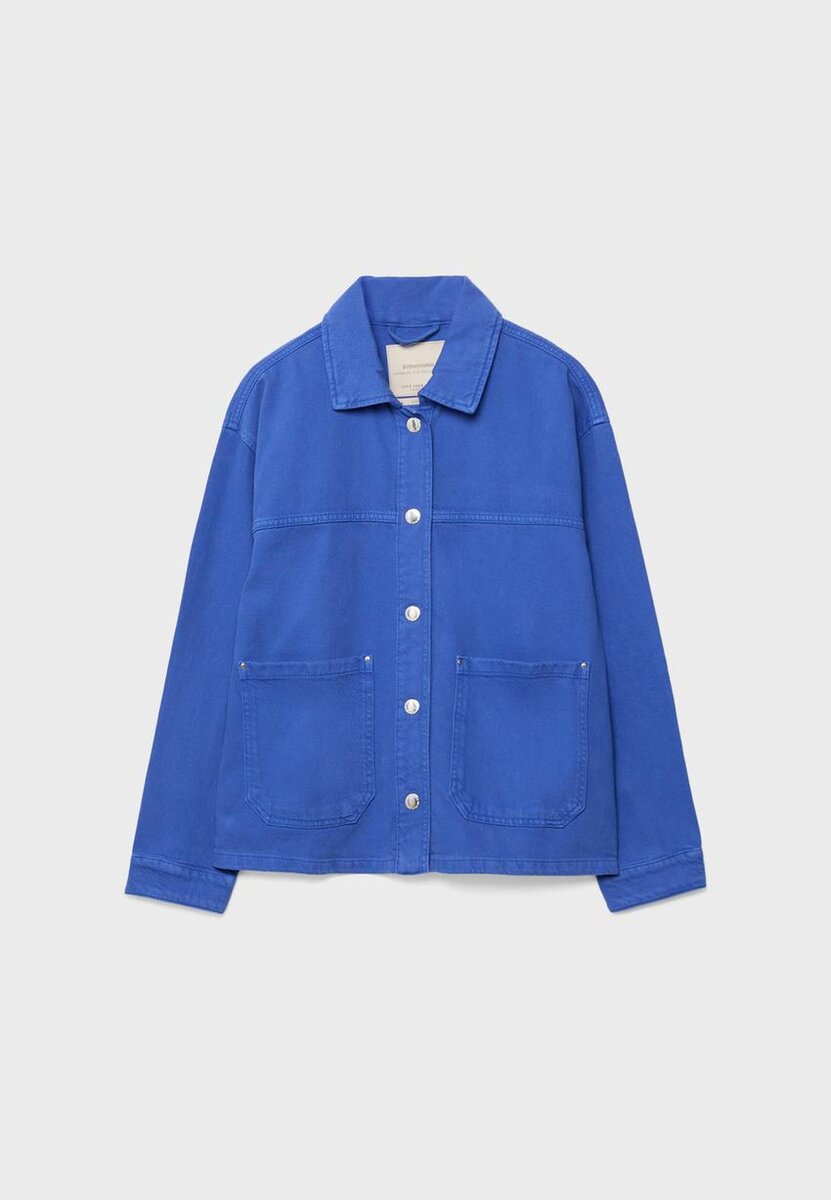 Veste à col, manches longues et poignets boutonnés. Poches plaquées sur le devant. Fermeture à boutons-pression sur le devant.