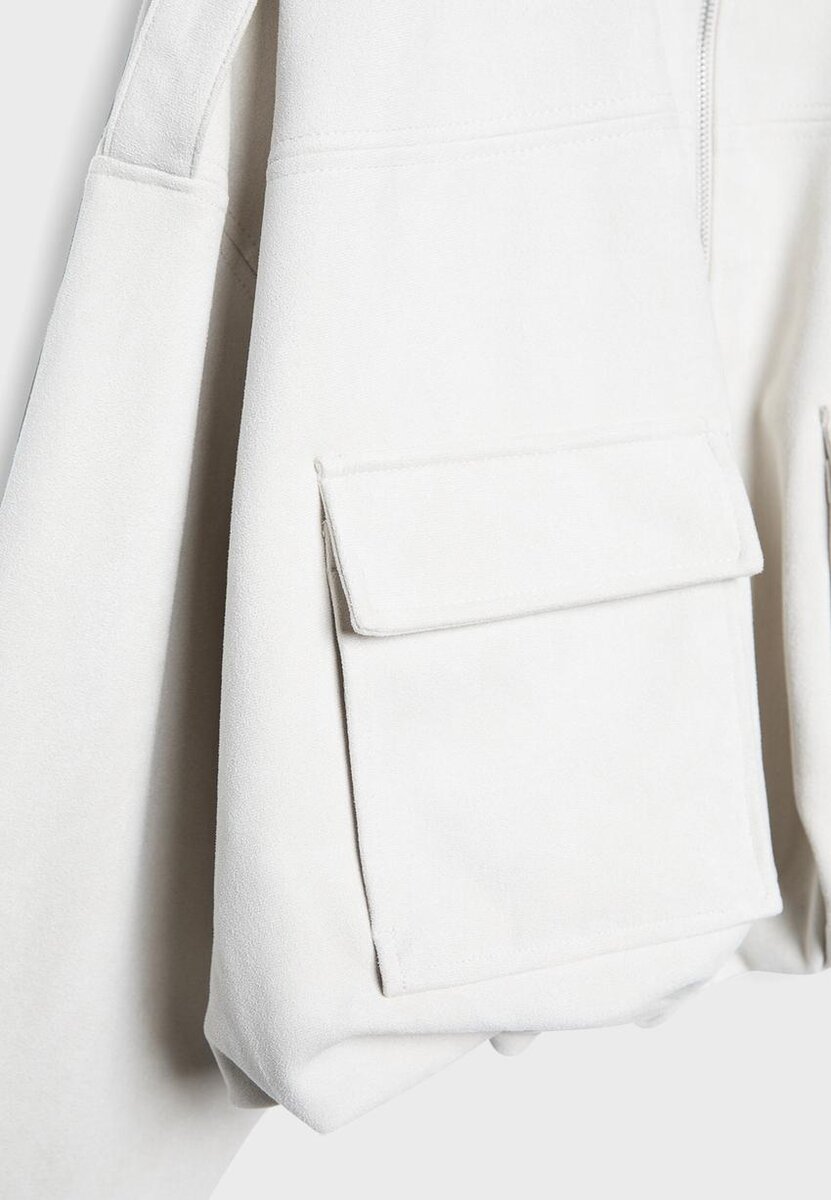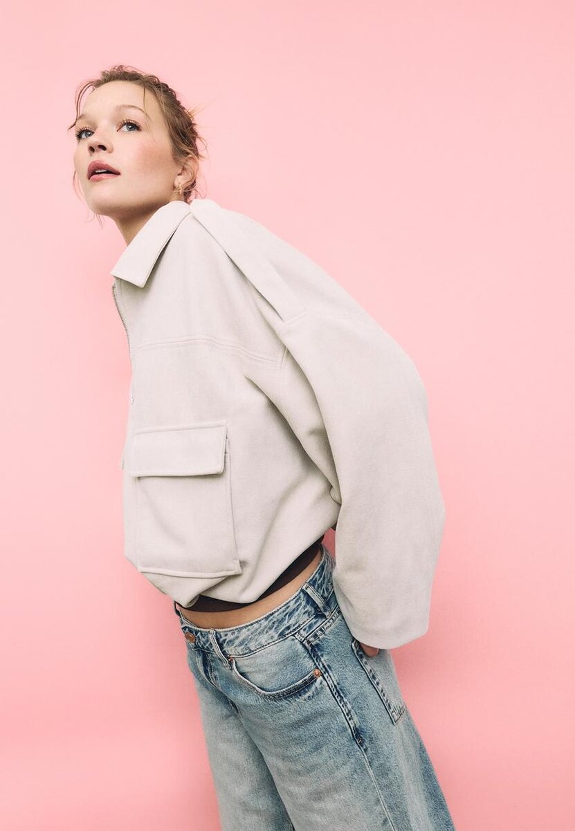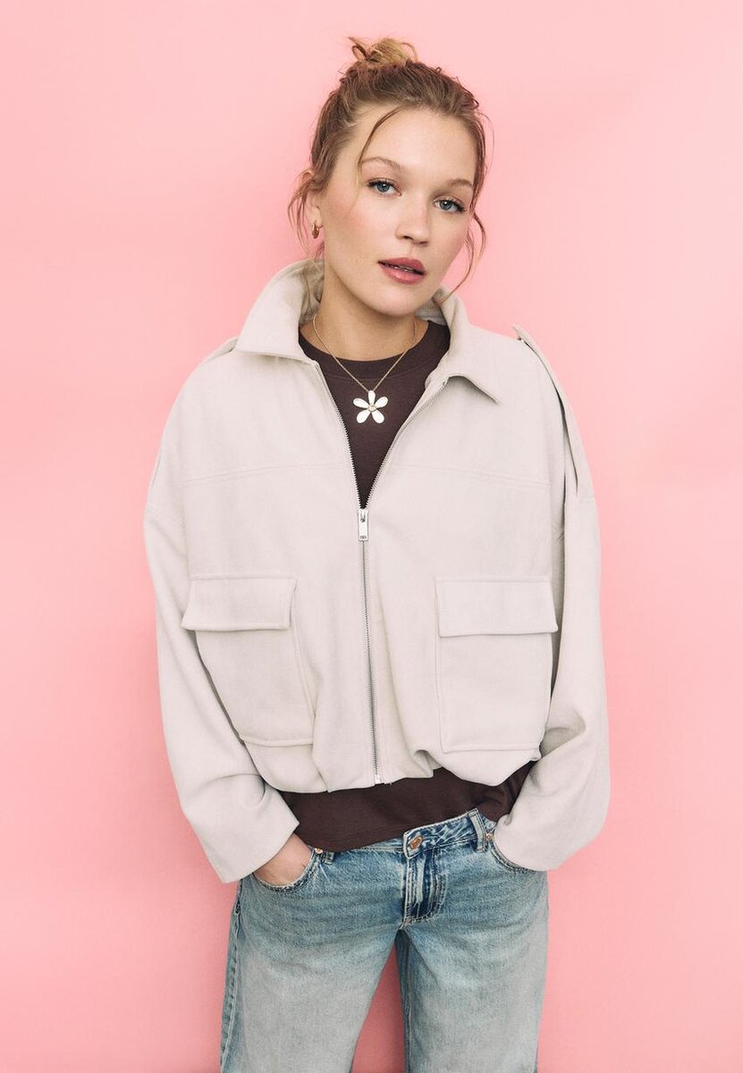 Veste en tissu simili-suède. Coupe bomber avec col à revers. Manches longues et ourlet élastiqué. Poches plaquées sur le devant. Fermeture à glissière sur le devant. Patte d’épaule. Disponible en plusieurs couleurs.