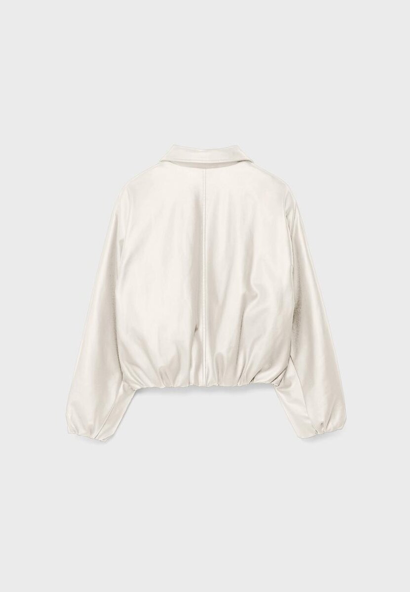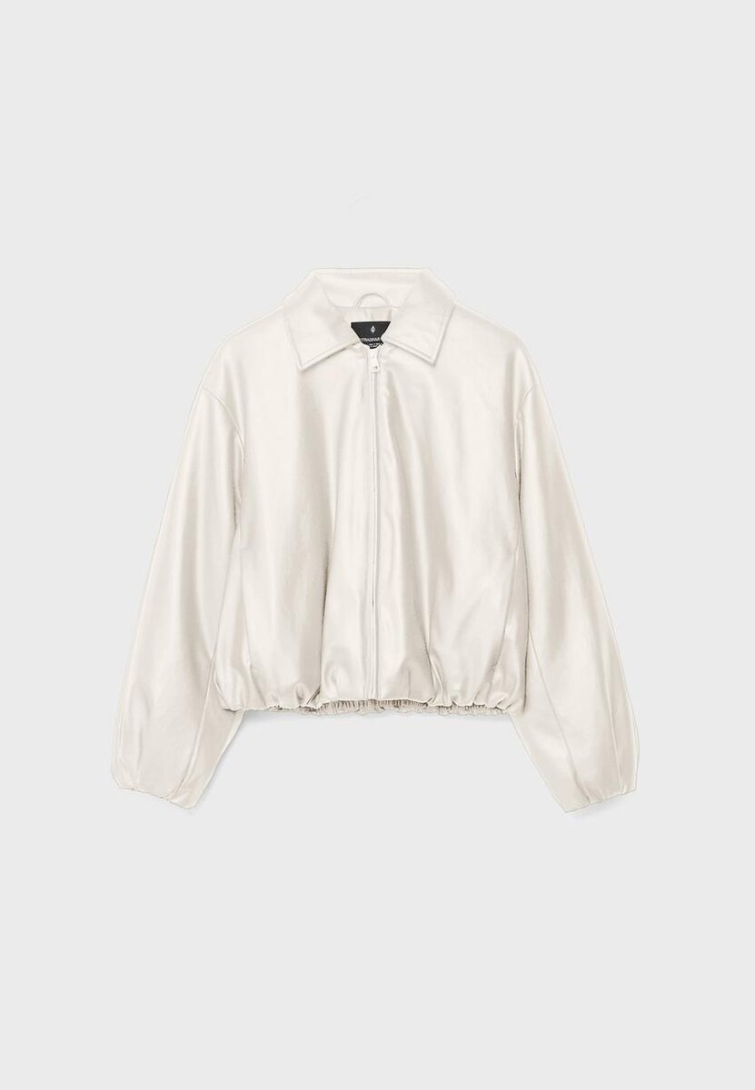 Veste bomber matelassée en tissu effet cuir. Col à revers et manches longues avec poignets élastiqués. Poches latérales. Ourlet bouffant avec élastique. Fermeture à glissière métallique sur le devant.