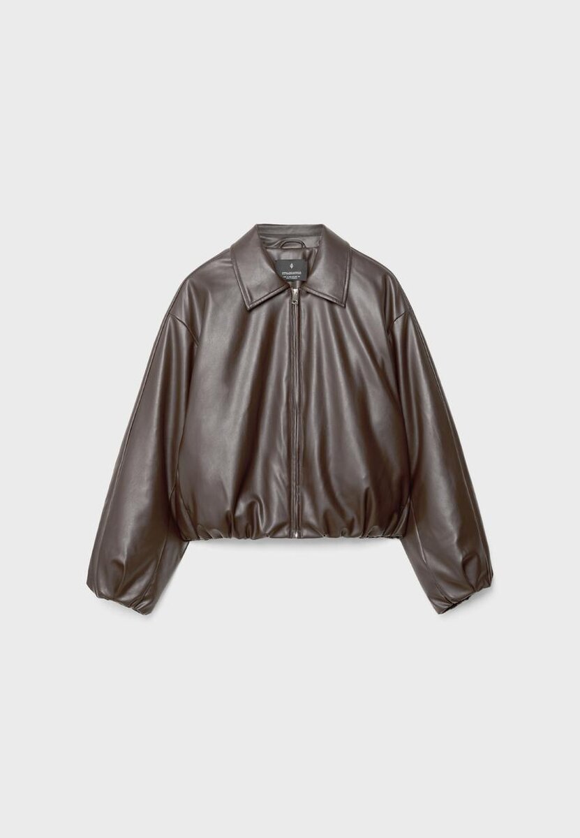 Veste aviateur matelassée effet cuir chez Stradivarius pour seulement 69,9 $, disponible pour une durée limitée. L’effet cuir pour femme est toujours tendance, venez le découvrir dès maintenant !
