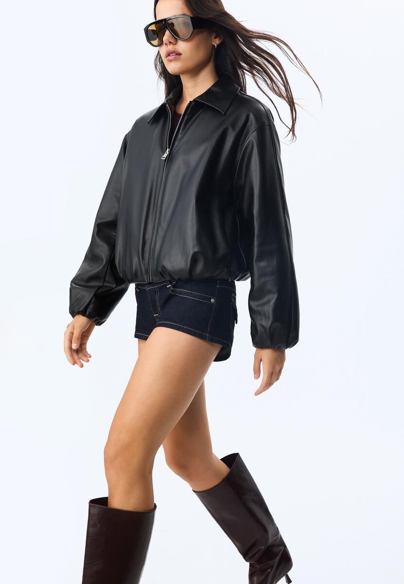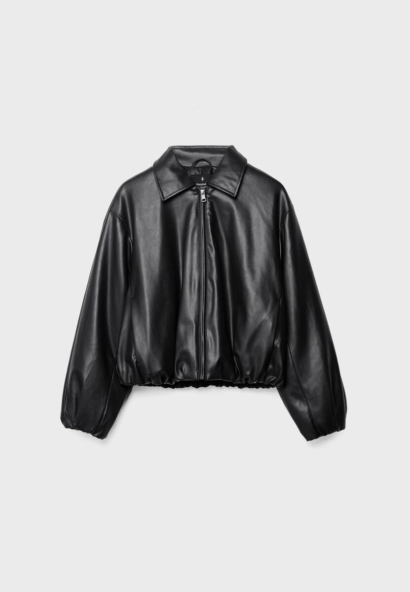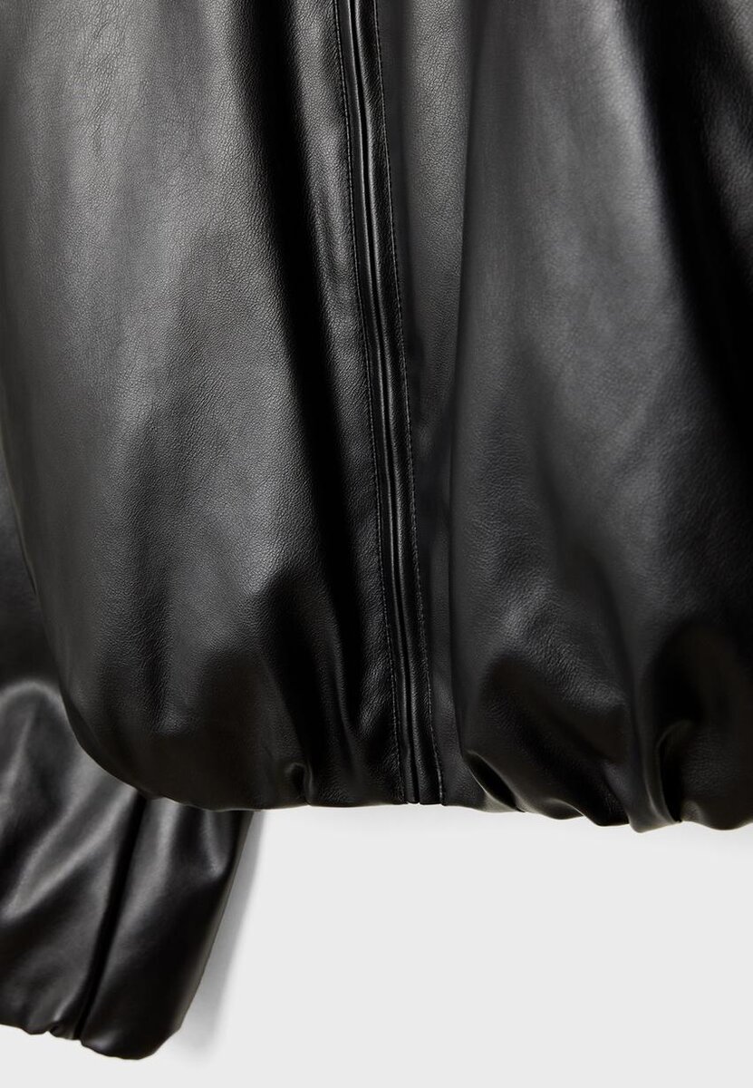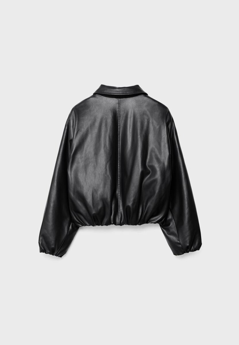 Veste aviateur matelassée en tissu effet cuir. Col à revers et manches longues avec poignets élastiqués. Poches latérales. Ourlet bouffant avec élastique. Fermeture à l’avant avec une fermeture éclair en métal.