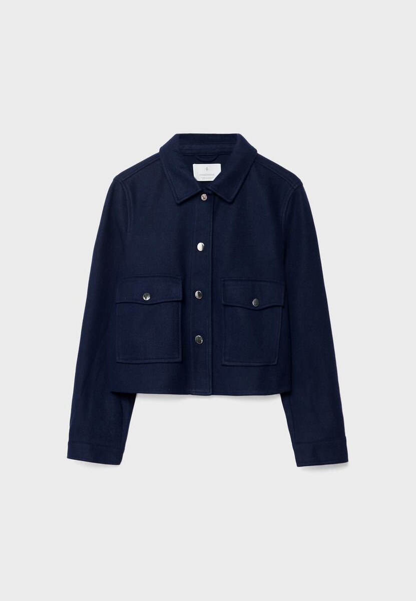 Veste courte en tissu à toucher doux. Col à revers et manches longues à poignets. Poches plaquées à rabat sur le devant. Fermeture à boutons-pression sur le devant. Disponible dans une gamme de couleurs.