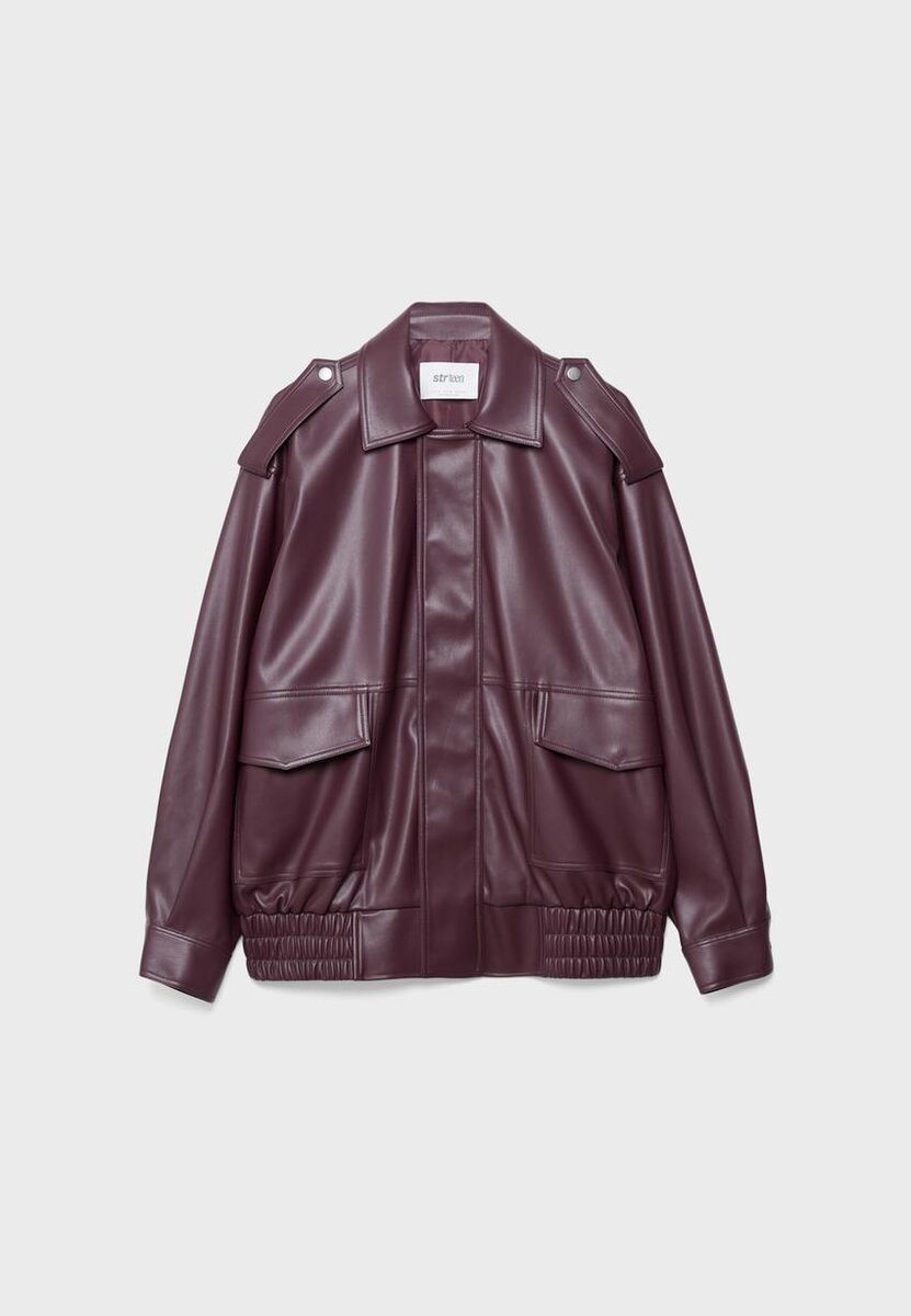 Veste oversize effet cuir. Col à revers et manches longues avec poignets à boutons-pression.