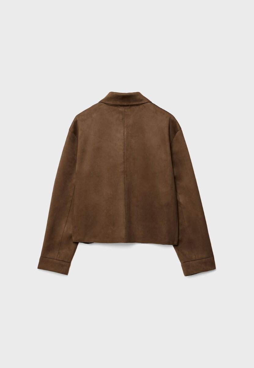 Veste en suède à col et manches longues. Dotée de poches plaquées à rabat sur le devant. Fermeture à boutons sur le devant.