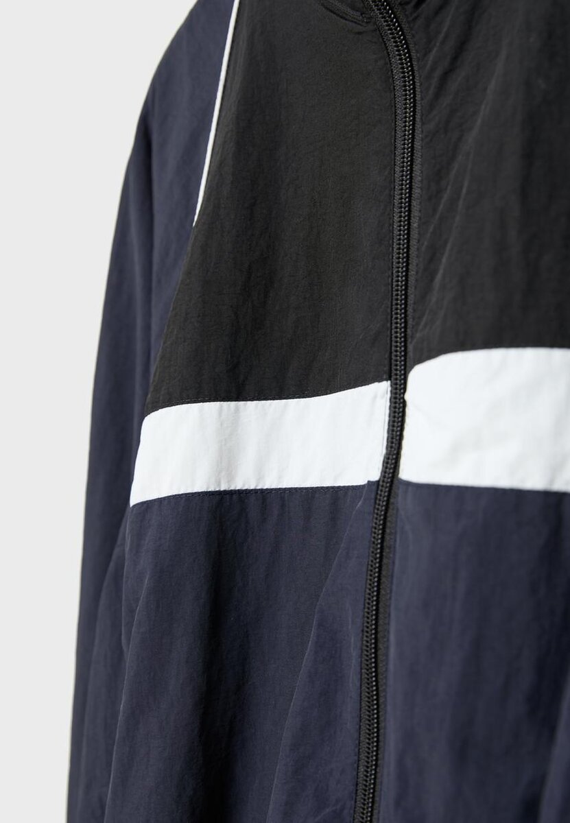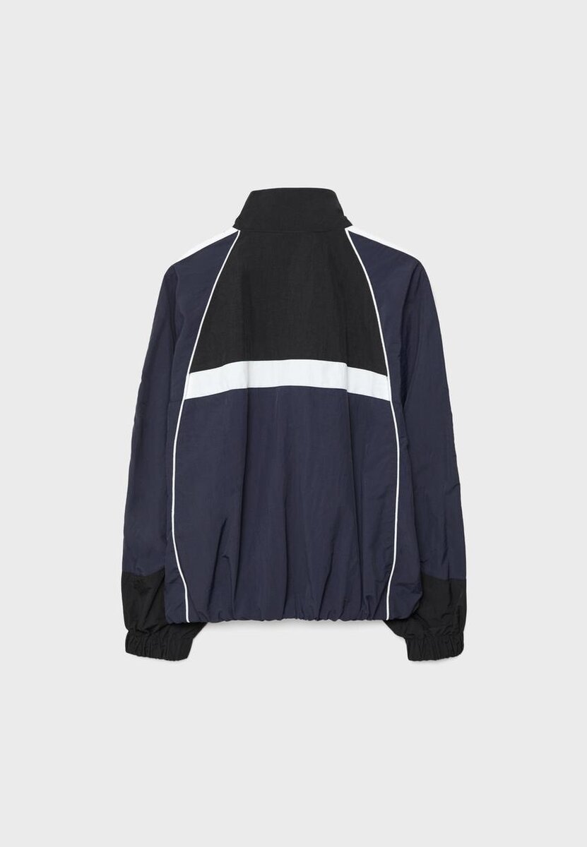 Veste à col montant et manches longues avec poignets élastiqués. Fermeture à glissière sur le devant et ourlet élastiqué.