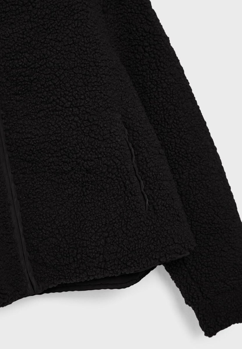 Veste à toucher doux en tissu doublé d’imitation peau de mouton. Col montant et manches longues à revers. Poches passepoilées sur les côtés. Ourlet ajustable avec cordons élastiques et stoppeurs. Fermeture à glissière sur le devant. Disponible en plusieurs couleurs.